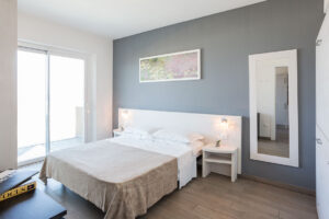 The one bedroom apartments also have double glass windows for perfect insulation, both for sound and temperature and ensure a truly relaxing and comfortable stay on the Velluto beach of Senigallia.